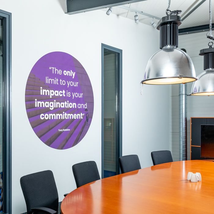 Breng een stijlvolle accentwand tot leven met een behangcirkel. De strakke cirkelvorm geeft jouw ontwerp een moderne uitstraling en laat full-color prints helder en krachtig tot hun recht komen. Dit maakt de behangcirkel perfect voor interieurtoepassingen zoals woonruimtes, kantoren, winkels en showrooms waar visuele impact gewenst is.